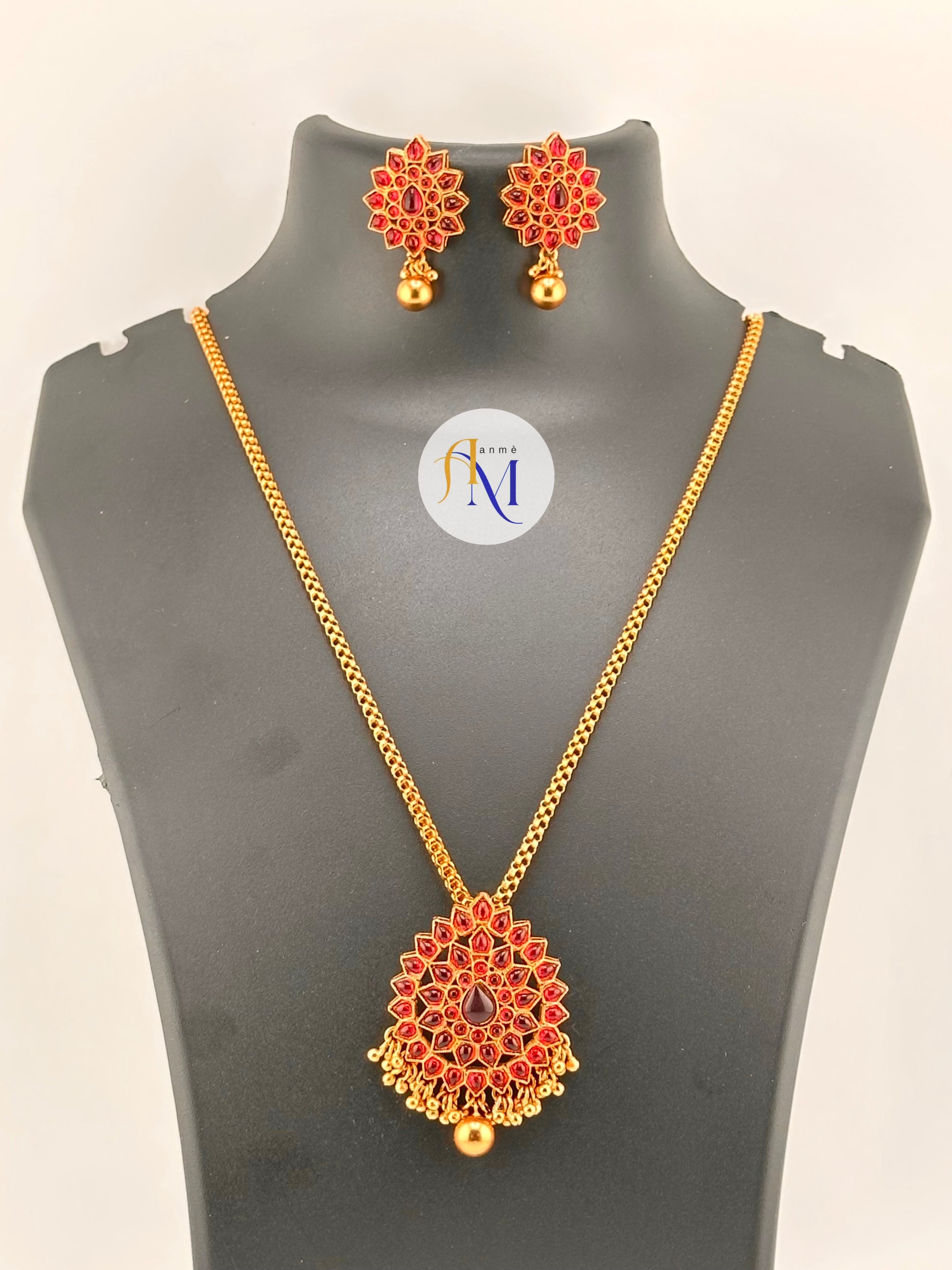 Beautiful and elegant Ruby Pendant with long golden chain with earrings