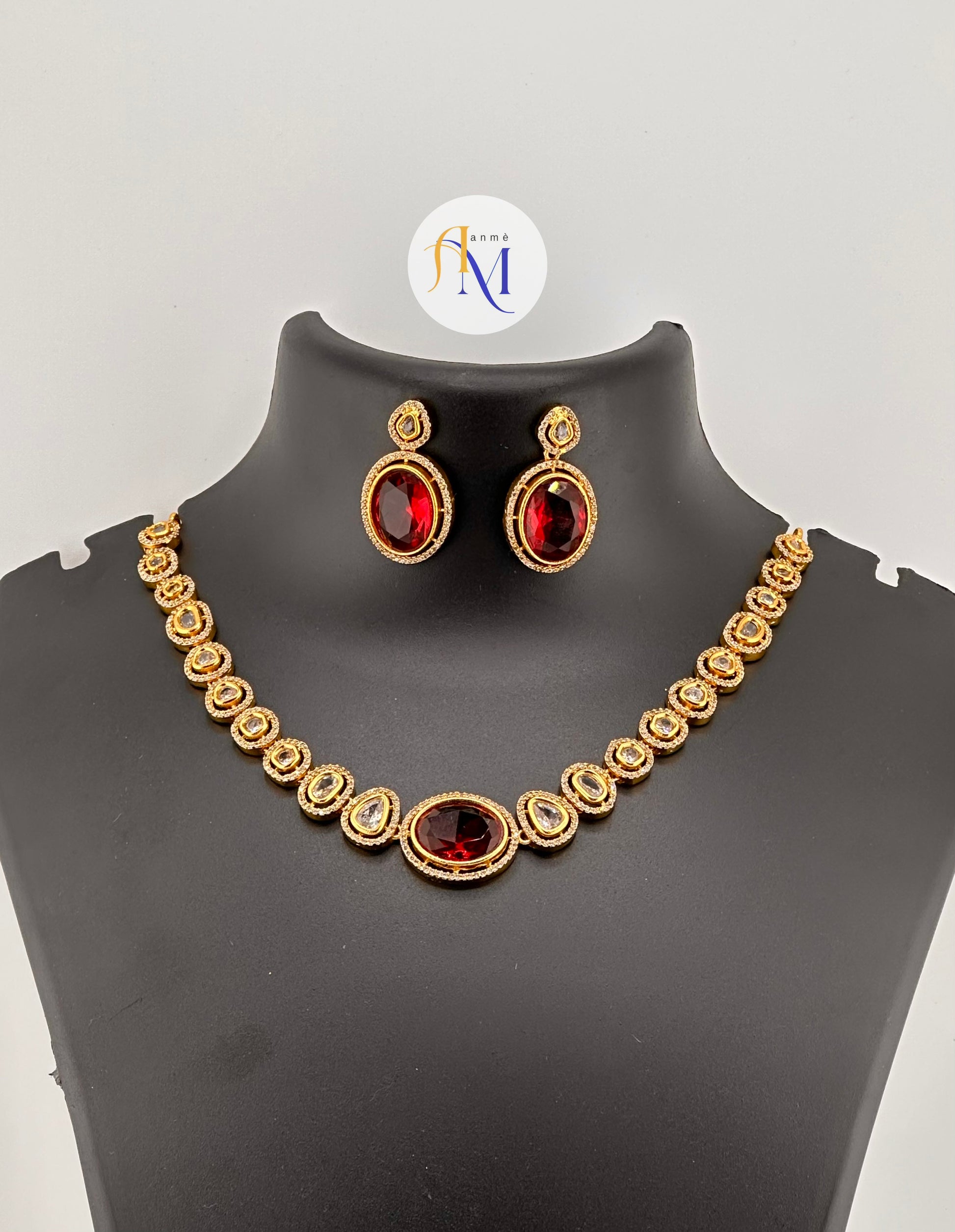 Elegant and beautiful diamond look alike necklace with beautiful red stone and white stones