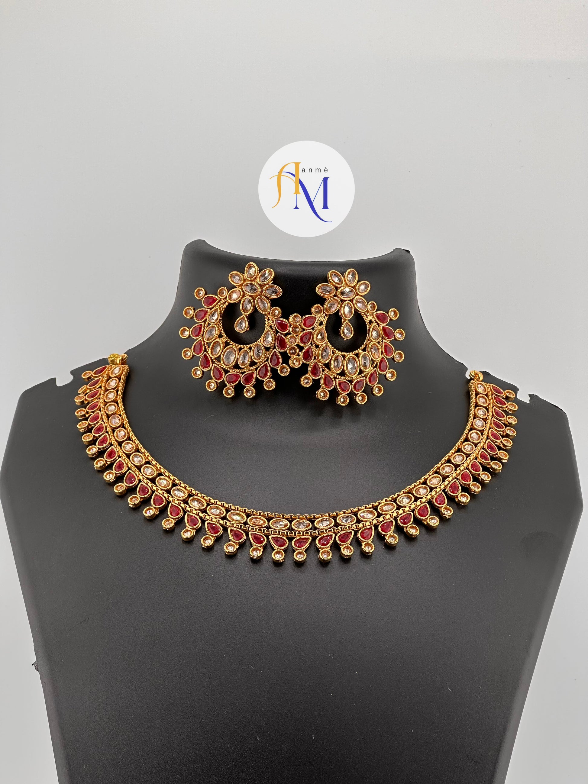 Kundan Polki Necklace Set or kundan choker with beautiful chandbali earrings