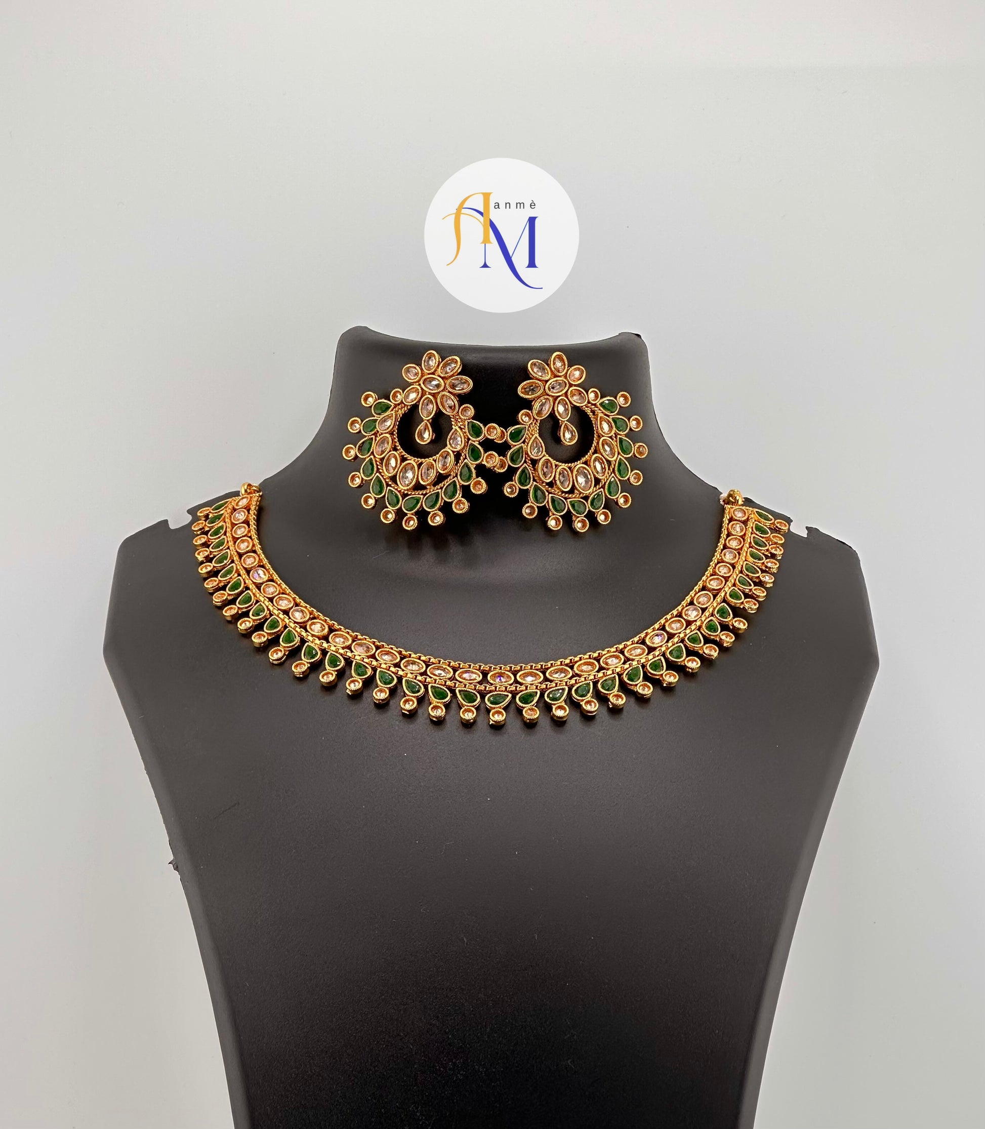 Kundan Polki Necklace Set or kundan choker with beautiful chandbali earrings