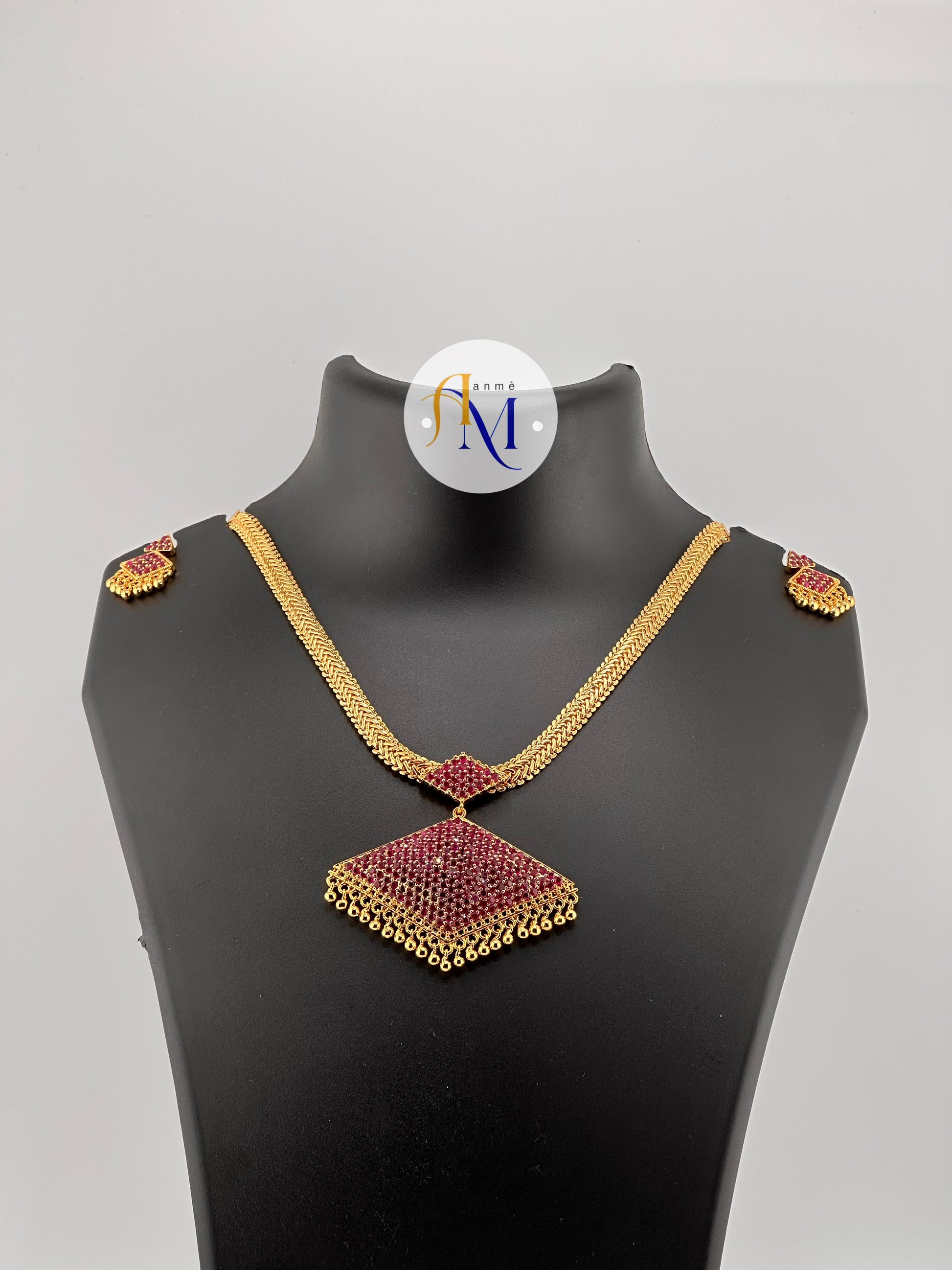 Elevate your jewelry collection with this Traditional Chutti Chain necklace set, expertly crafted to reflect timeless cultural elegance. The intricate design highlights detailed craftsmanship, making it ideal for special occasions and traditional attire. This set offers a perfect balance of sophistication and heritage, enhancing your look with authentic charm and lasting quality.